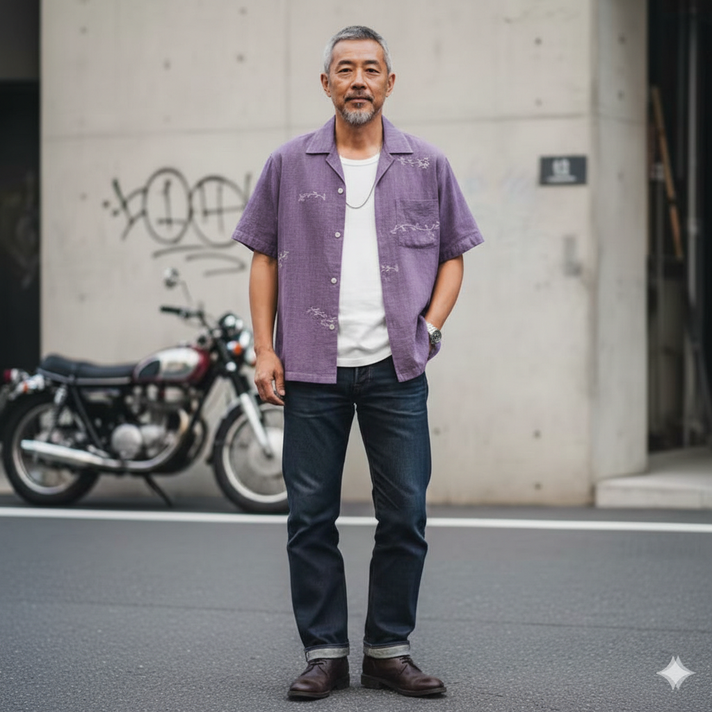 正絹 着物 紬 リメイク アロハシャツ