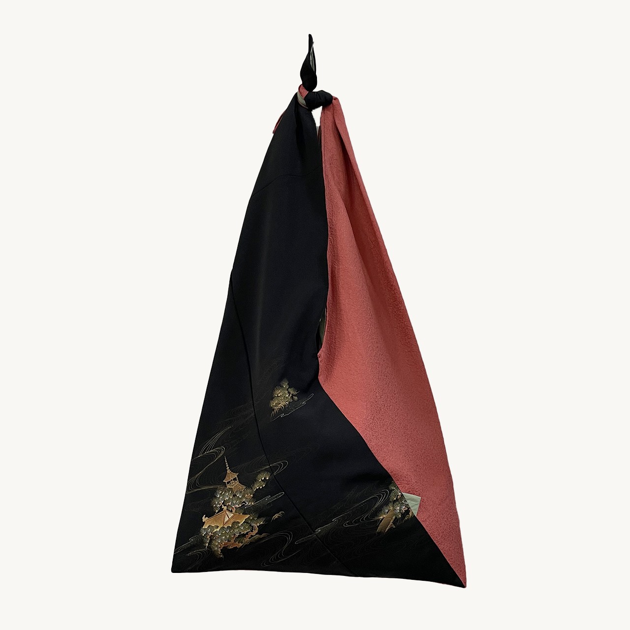kico あずま袋 【45㎝】 バイカラー 羽織 黄金流水紋 紅ちりめん