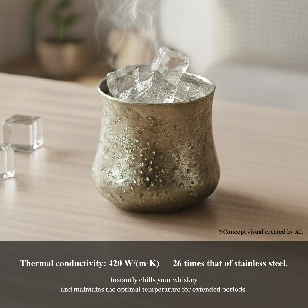 A craftsman carrying on the tradition of Tokyo Silverware dating back to the Edo period responded to voices from around the world calling for "a ritual to be enjoyed with all five senses," pursuing the question: "What vessel allows ice to ring most beautifully?"