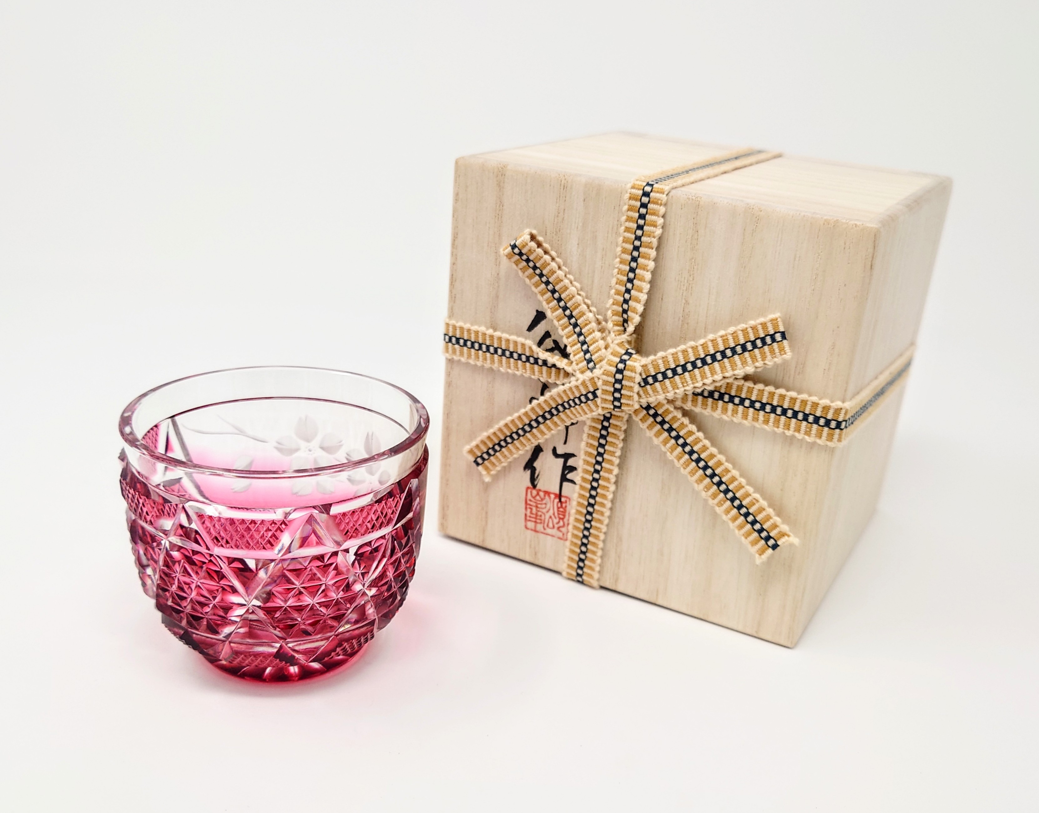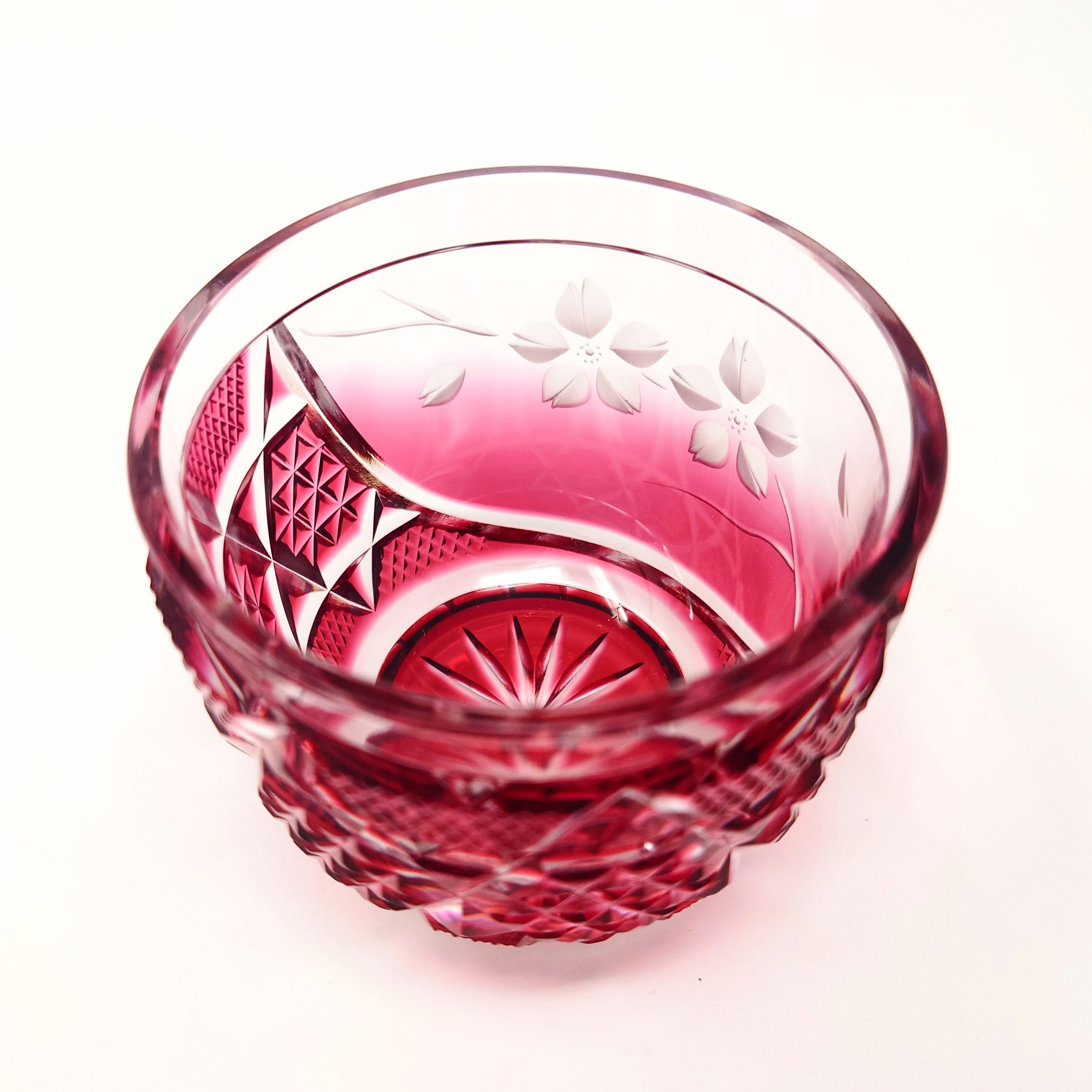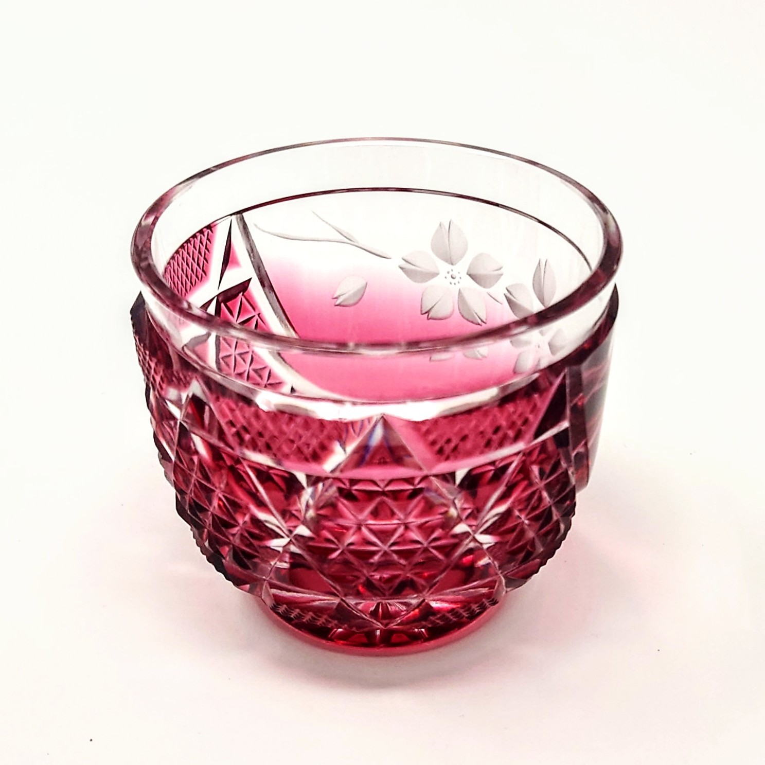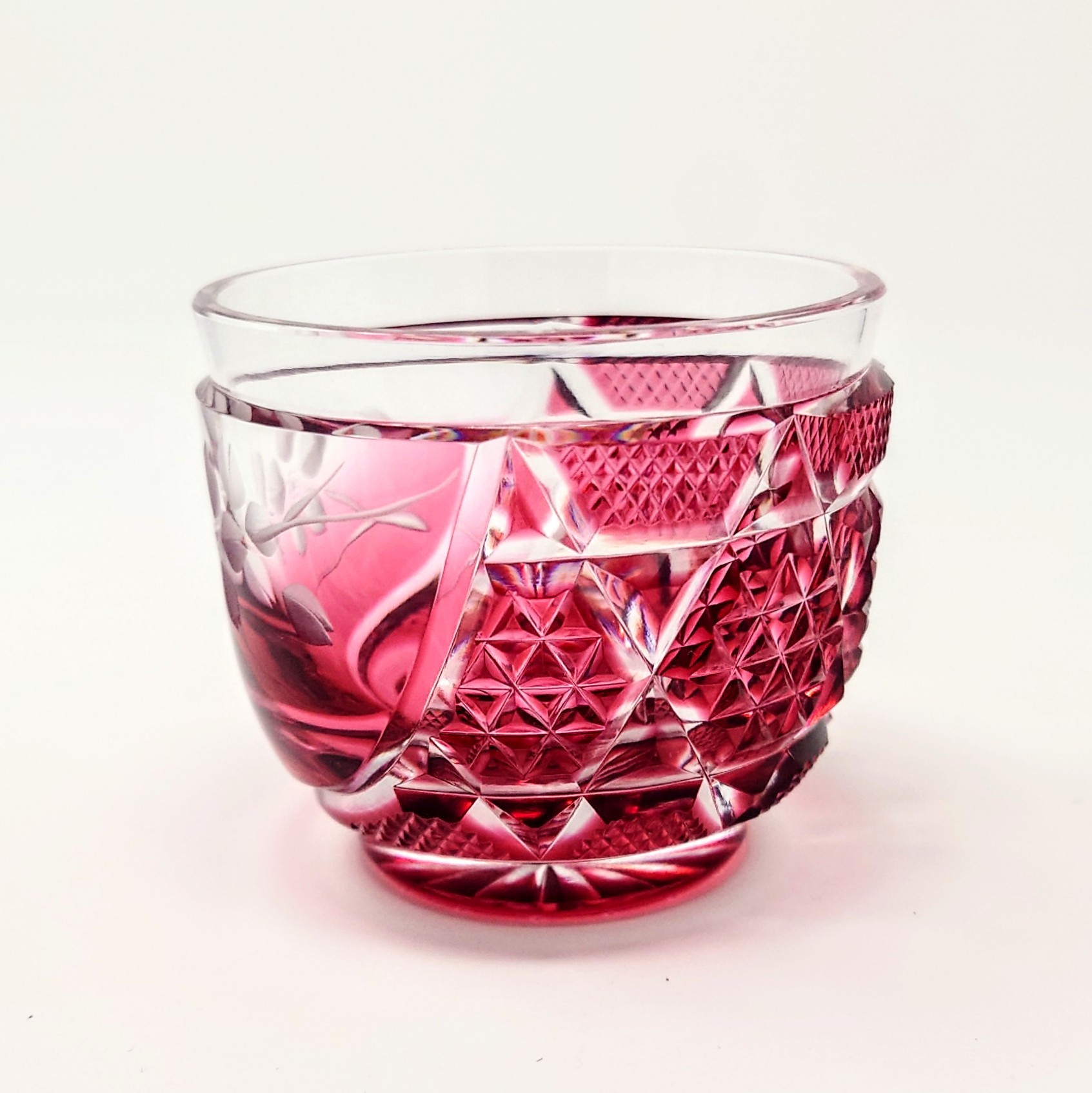 薩摩切子 猪口(おちょこ) 大 「花やか」︰金赤 頌峰作