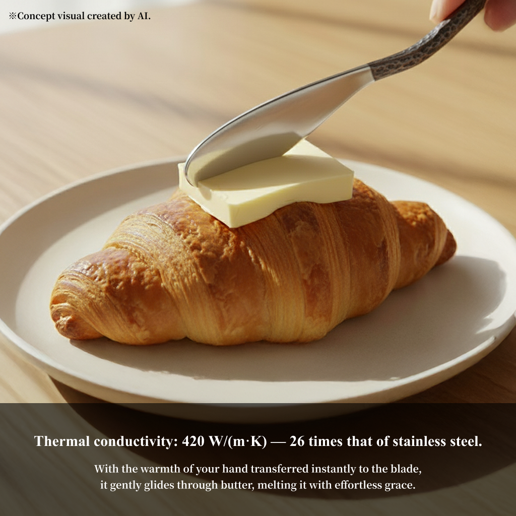 ・Thermal conductivity: 420 W/(m·K) — 26 times that of stainless steel.
