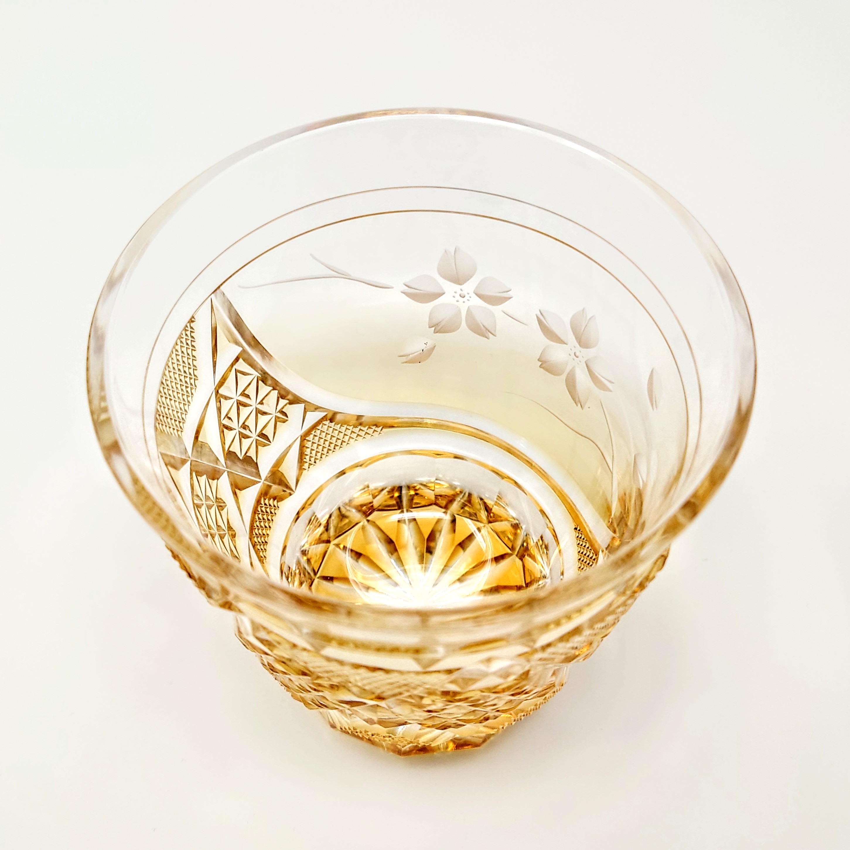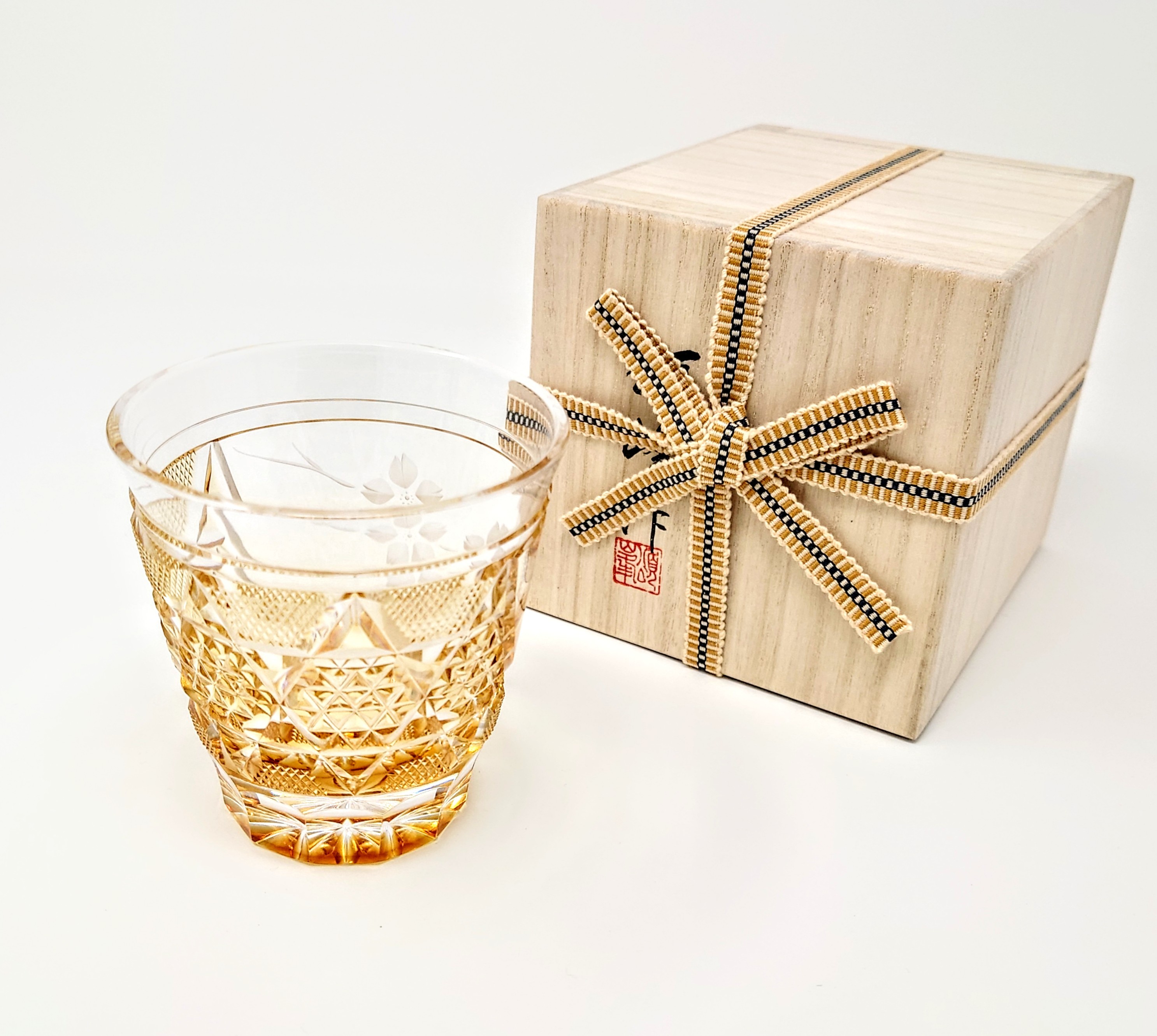 This exquisite piece, created using delicate kiriko techniques that involve engraving into glass, embodies both elegance and sophistication.
