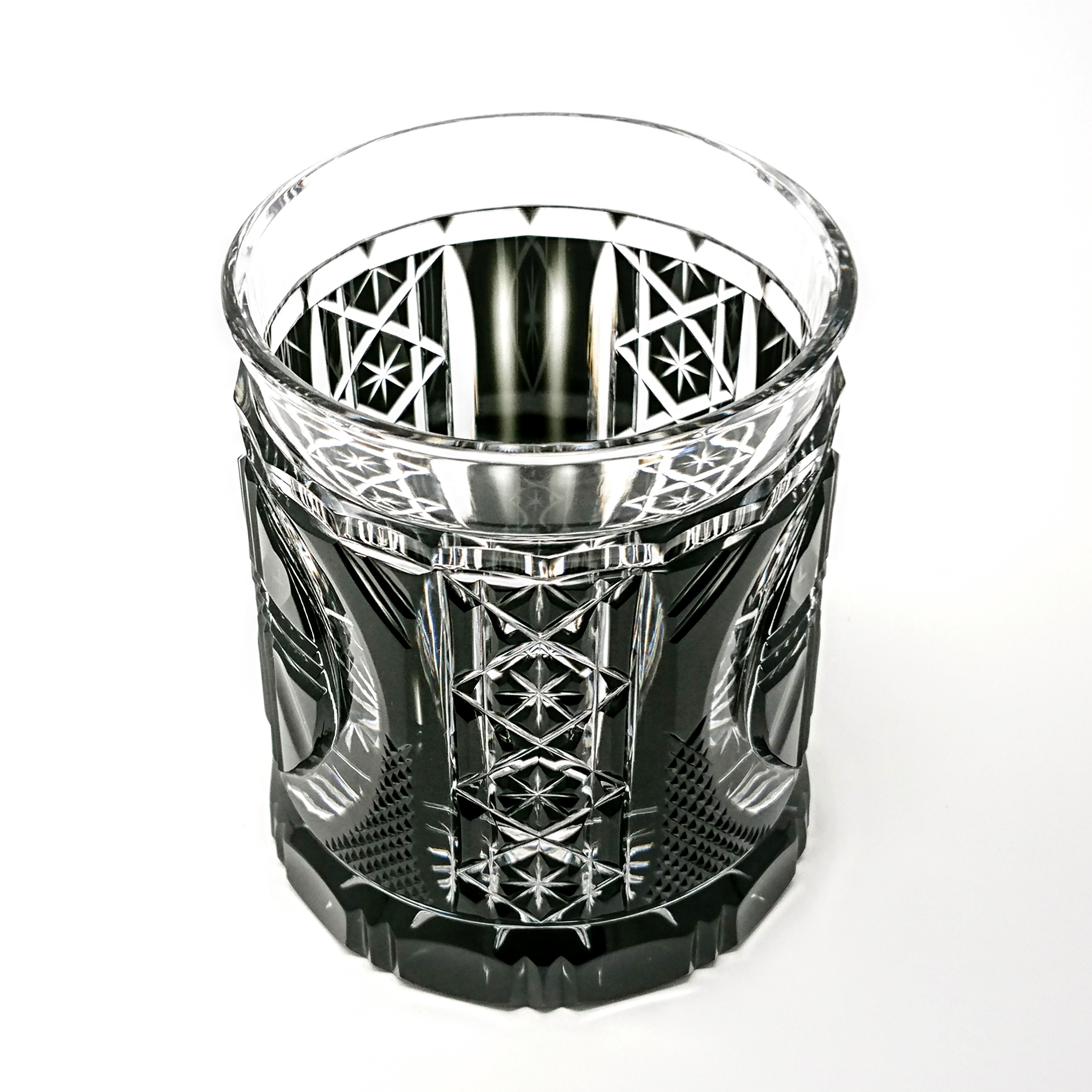 薩摩切子 オールドファッション(ロックグラス)「ゾウの靴」︰黒は、深い黒色が醸し出す落ち着きが印象的な超高級グラスです。