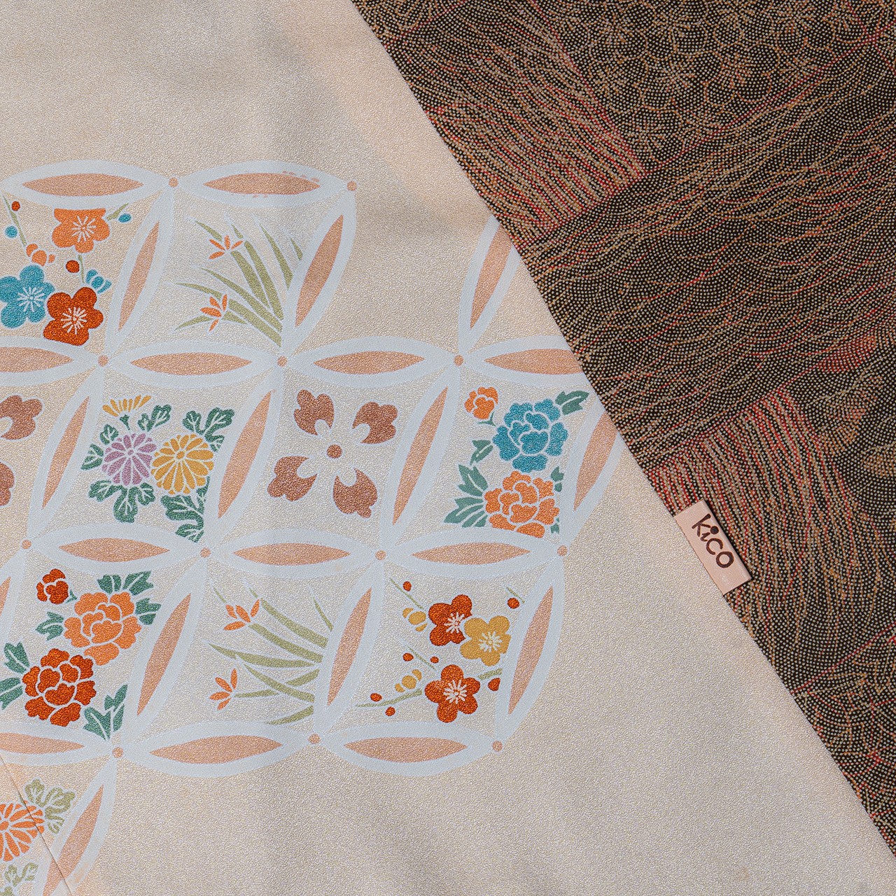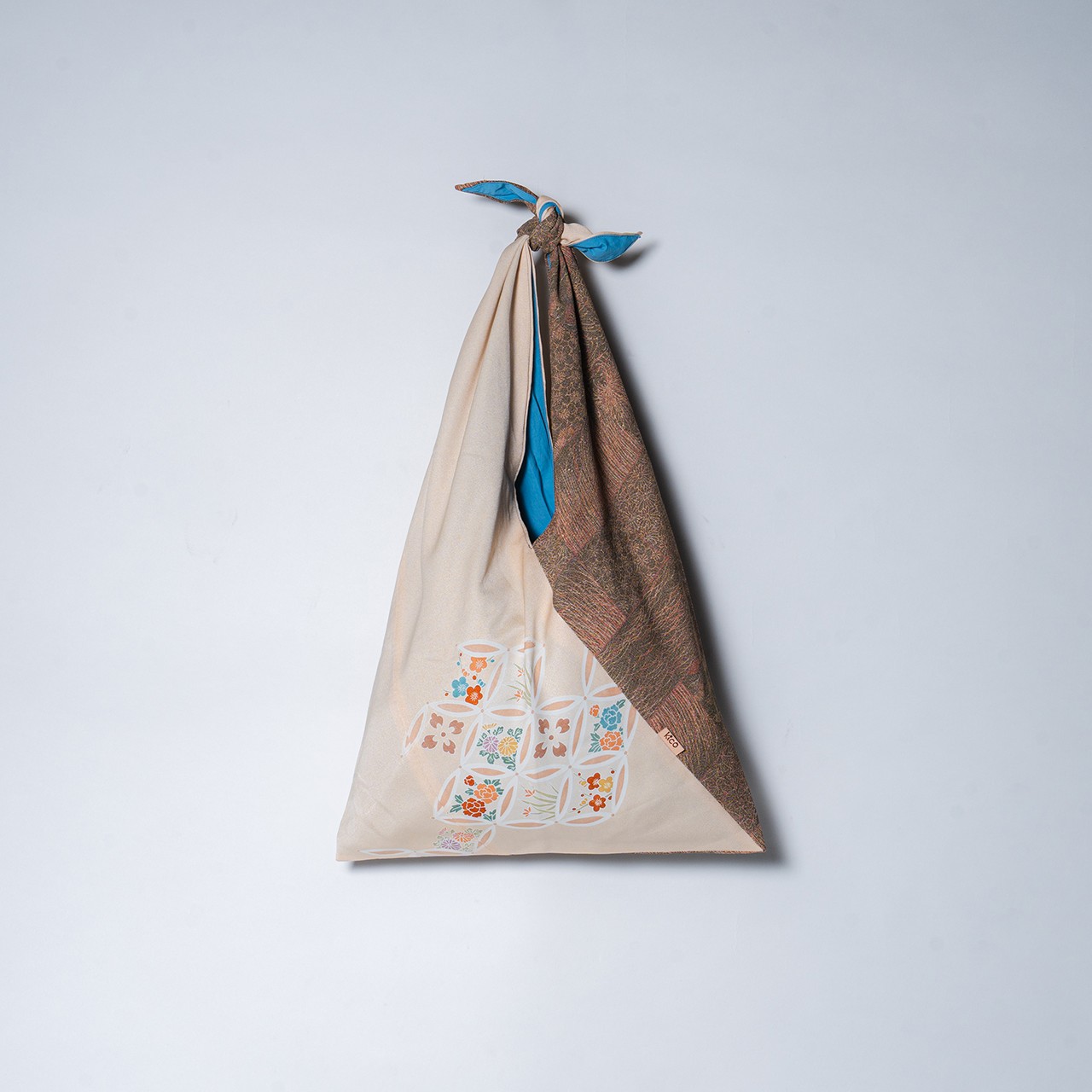 kico あずま袋 【45㎝】 バイカラー 花柄七宝紋様 幾何学文様