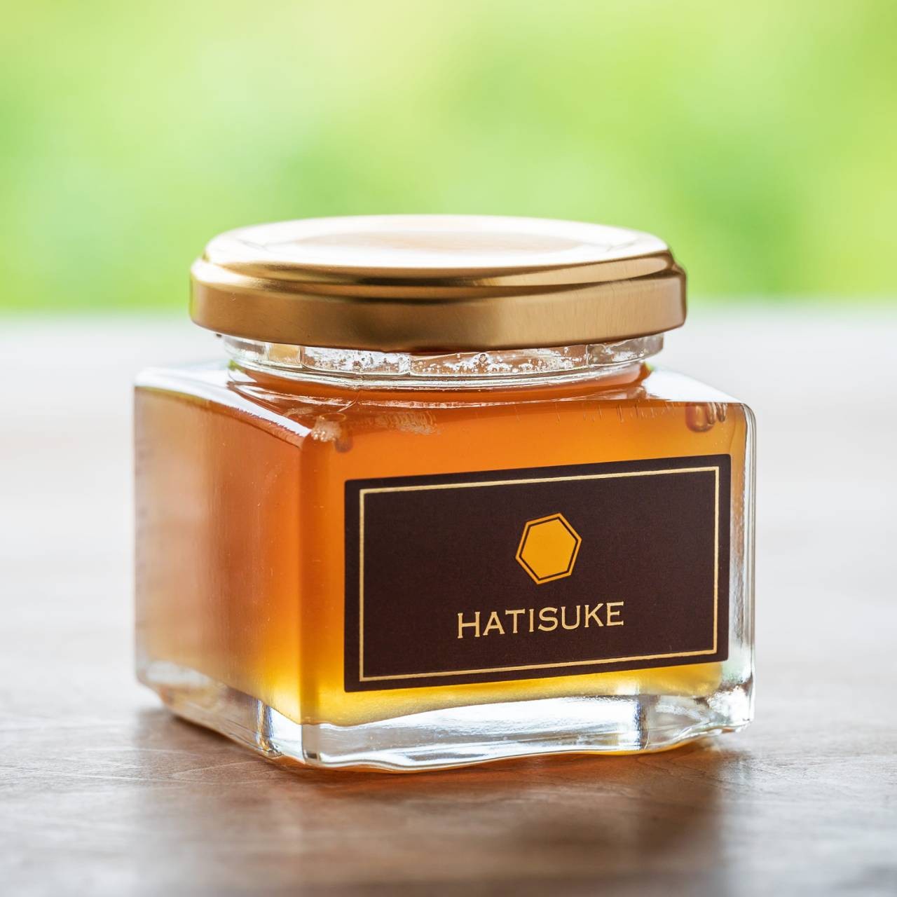 八助の二ホンミツバチは、京都の野山に咲く四季折々の花を飛び回り、一年をかけて花粉や花蜜を集めます。蜂の力で酵素を加え、じっくりと時間をかけ濃縮、熟成してできるのが、このとても希少な二ホンミツバチの蜂蜜です。日本国内の蜂蜜自給率は約5%、そのうち二ホンミツバチの蜂蜜は1%に満たないそうです。この働き蜂によって集められてできた二ホンミツバチの百花蜜は、たくさんの栄養素のかたまりでもあり、濃厚でまた風味も豊かです。薬剤を使用せずにミツバチを飼育し、一年に一度だけ採取した蜜を非加熱の状態で酵素も栄養素も活きたまま瓶詰にします。 また、八助では、できるだけ自然のままの蜂蜜を皆様へお届けしたいという気持ちから、ゆっくりと“垂れ蜜”でろ過をした分だけを、そのまま瓶詰めしております。