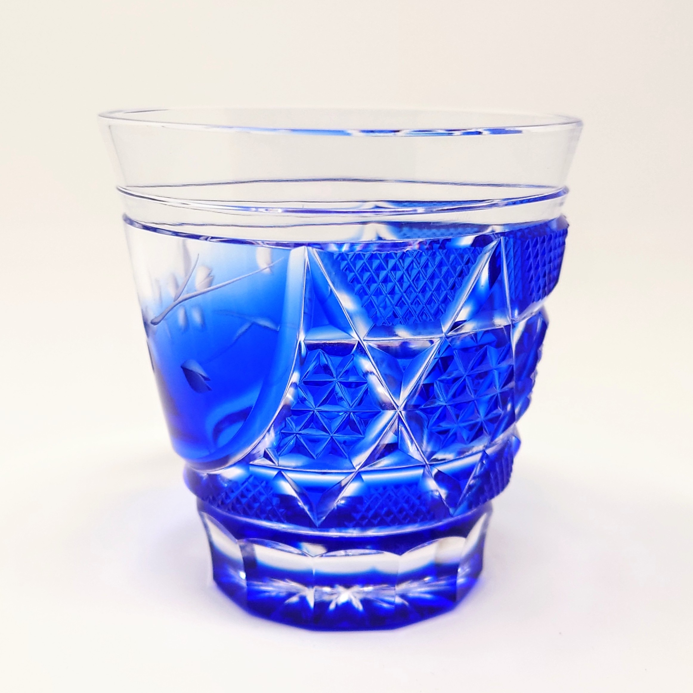 薩摩切子 オールドロック (ロックグラス) 「花やか」︰ルリ 頌峰作