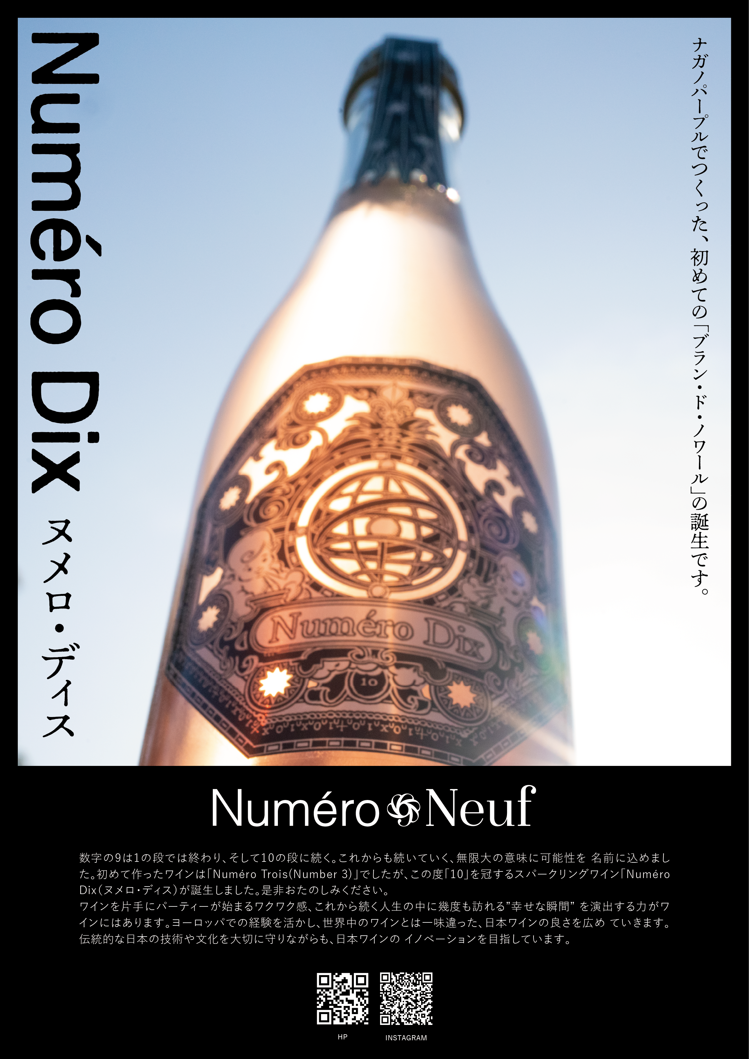 Numero Dixの味わいは、東洋と西洋を行き来するようなそんな感覚をお届けします。日本ワインの新しい可能性と、“ここにしかない美しさ”を象徴するスパークリングワインです。