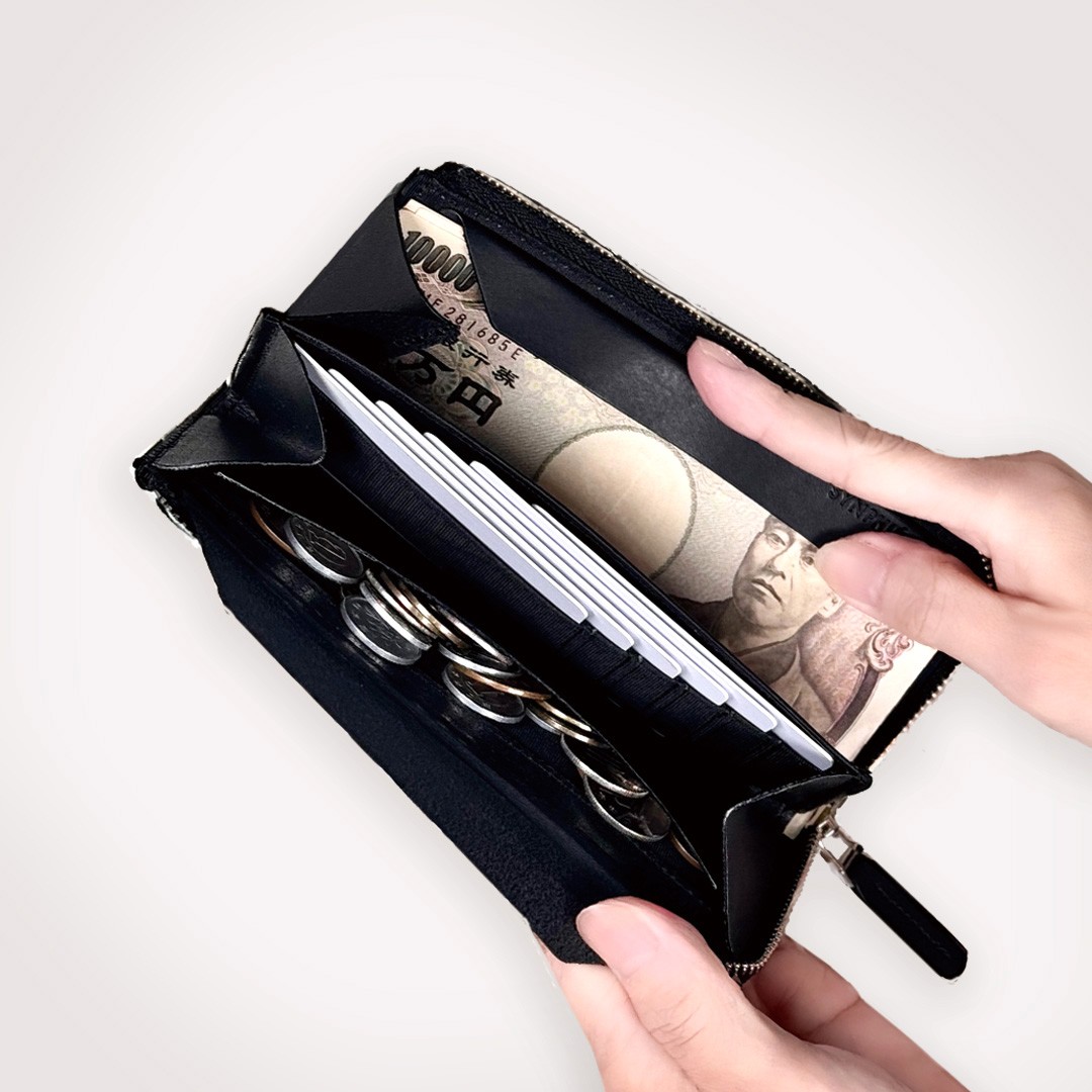 ・開閉時にファスナーにお札が噛んだり、破れたりしないようにお札用フラップがついています。(お札推奨12枚)