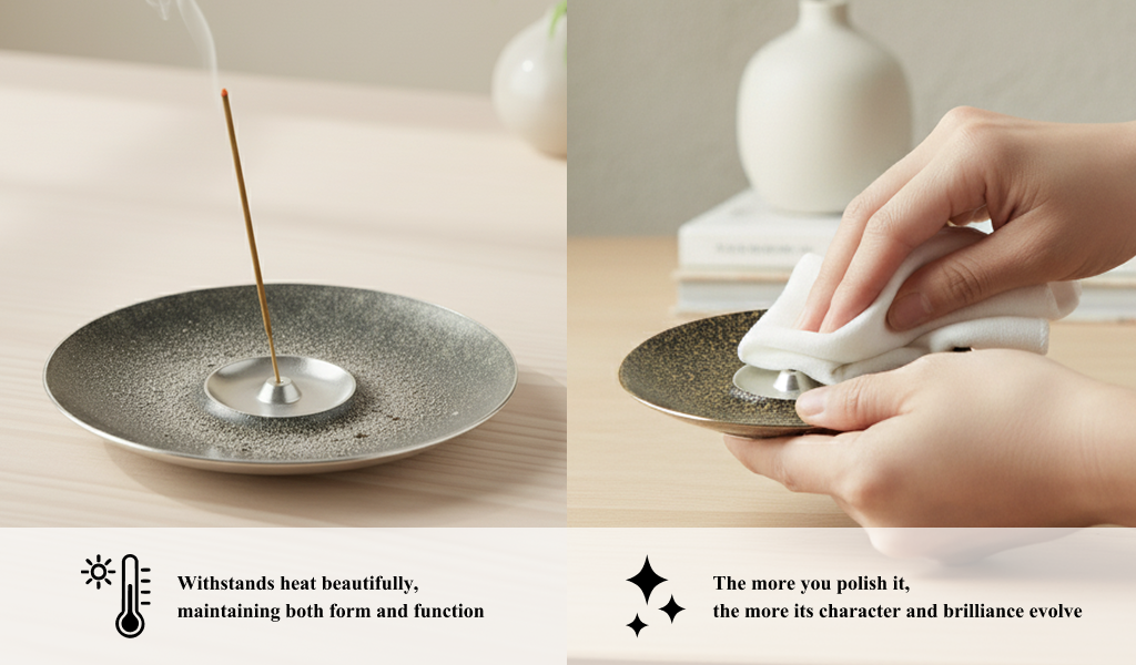 ・Thermal conductivity: 420 W/(m·K) — Chemically stable pure silver withstands heat and brings out the delicate fragrance of incense in its purest form.